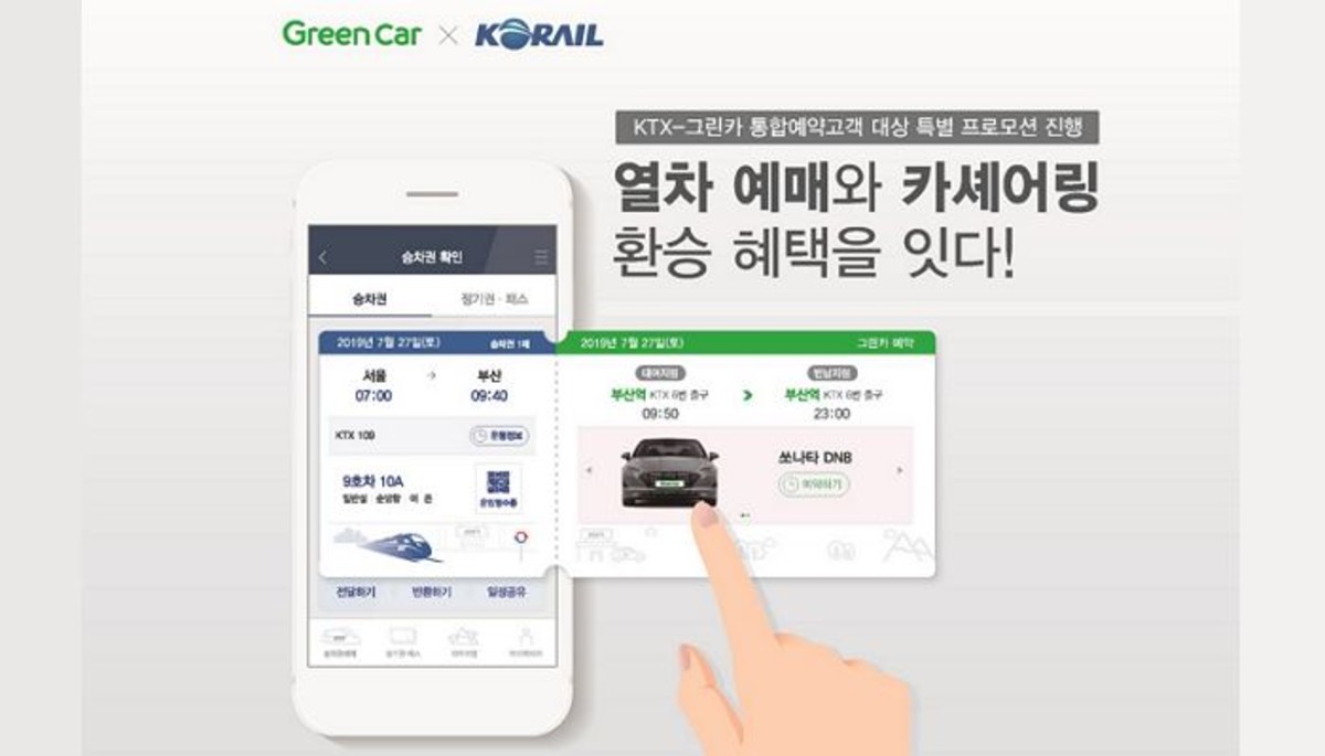 [인사이트] 석태진 기자 = 카셰어링 브랜드 그린카는 코레일과 함께 KTX와 카셰어링 서비스를 연계해 이용하는 고객을 대상으로 특별 프로모션을 진행한다고 31일 밝혔다.