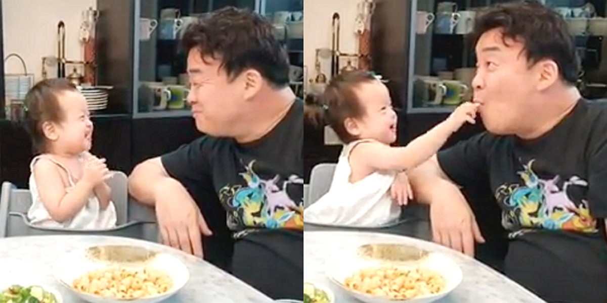 세은이는 아빠의 입에 과자를 직접 넣어주며 애교를 부렸고, 이에 백종원은 함박웃음을 지었다.