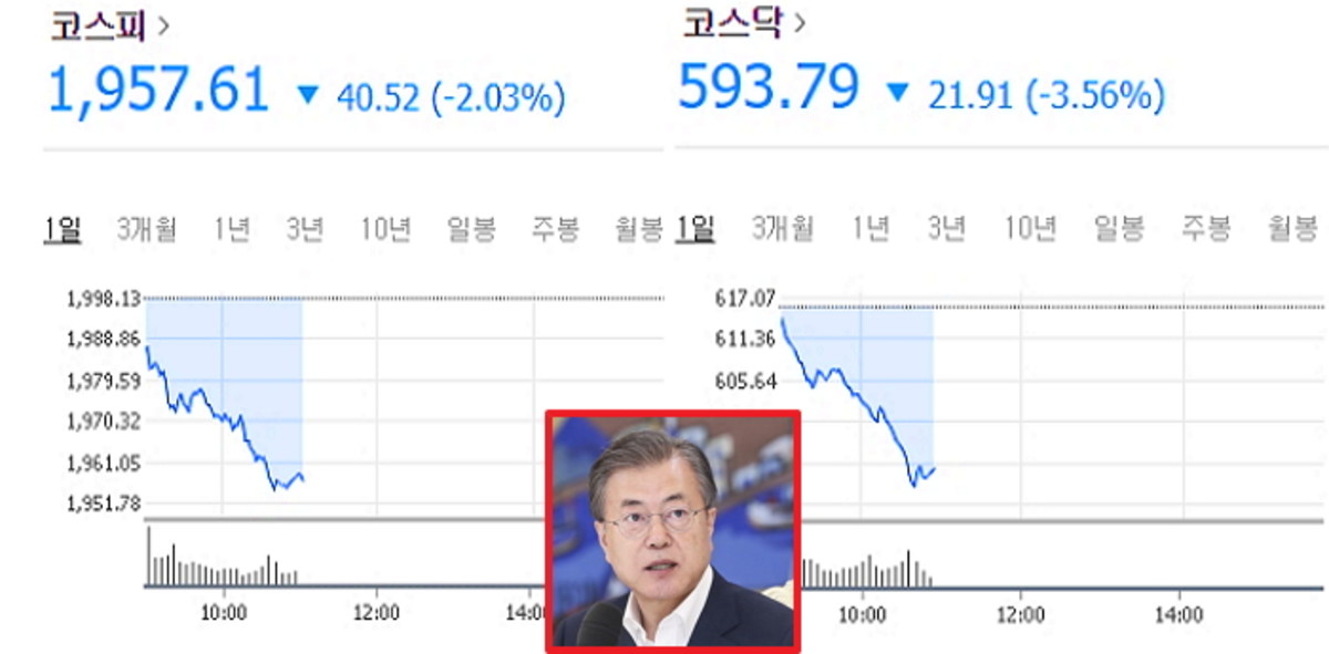 비록 장중이기는 하지만, 5일 오전 11시 기준 코스피지수가 1,960선을 내줬고 코스닥은 1년 5개월 만에 600선이 붕괴됐다.