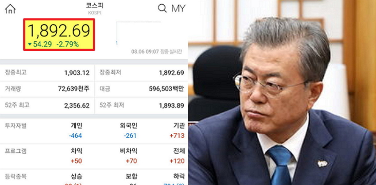 코스피 지수가 1900선 밑으로 떨어진 것은 2016년 6월 24일 이후 처음 있는 일이다. 이는 무려 약 3년 2개월 만이다.