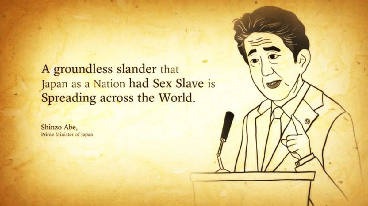 또한 아베 총리를 애니메이션으로 형상화하여 "일본이 국가적으로 여성을 성노예로 삼았다는 근거없는 중상이 전 세계에 퍼지고 있다"라는 실제 발언을 영상안에 그대로 넣어 잘못된 역사인식을 비판했다.