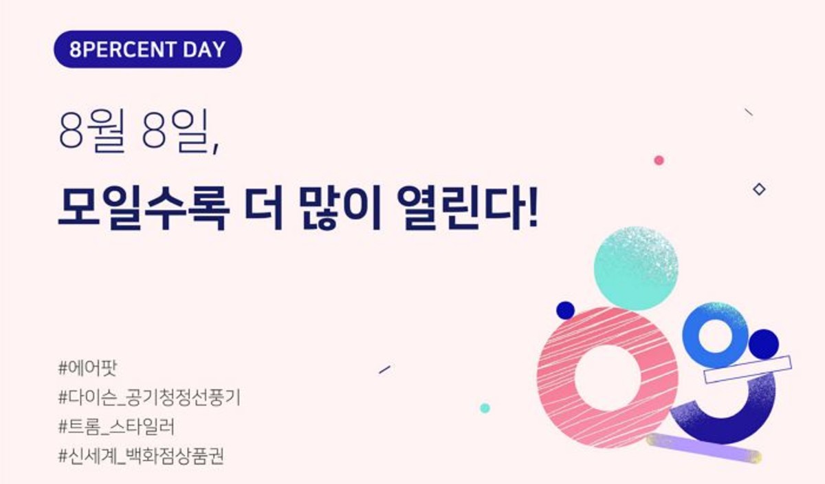 국내 1호 중금리 기업 8퍼센트는 투자 고객을 대상으로 감사의 마음을 전하는 '8퍼센트데이 이벤트'를 진행한다.