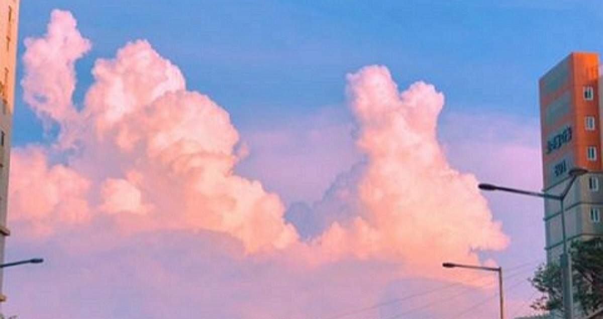 특히 토끼 구름의 모습은 석양의 빛을 받아 '코랄 핑크빛'으로 물들어 색깔까지 진짜 토끼 같다.
