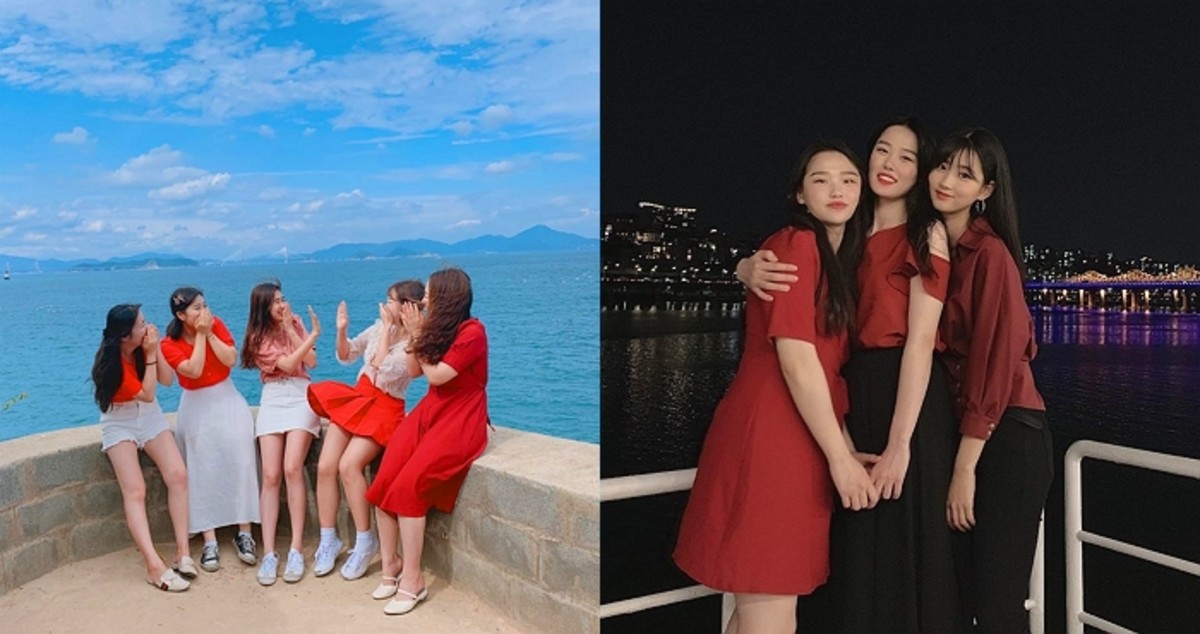 여행에서 단체 인생샷을 얻고 싶은 자들은 어떤 배경과도 카멜레온처럼 잘 어울리는 레드룩에 도전해보자.