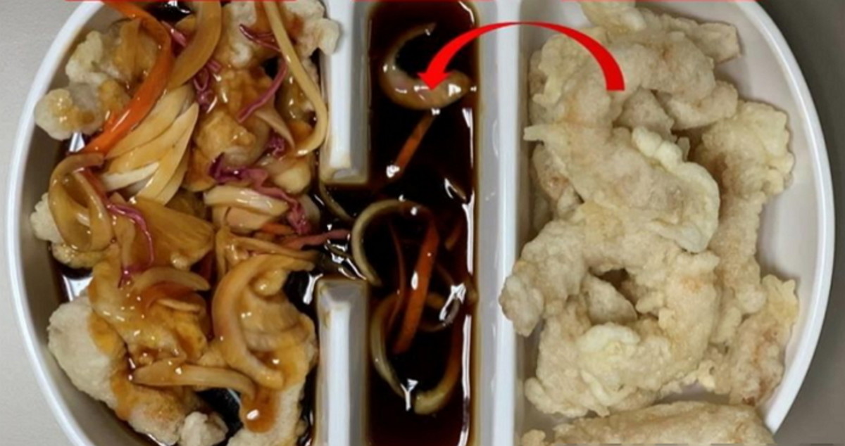 특히 그릇을 잘 살펴보면 왼쪽 탕수육의 경우 소스가 담겨있는 가운데 칸과 연결돼 있어 바로 '부먹'이 가능하다.