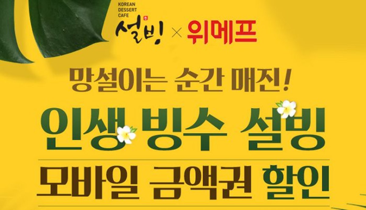 설빙은 우선 위메프 '11시 특가'를 시작으로 프로모션 릴레이를 이어간다.