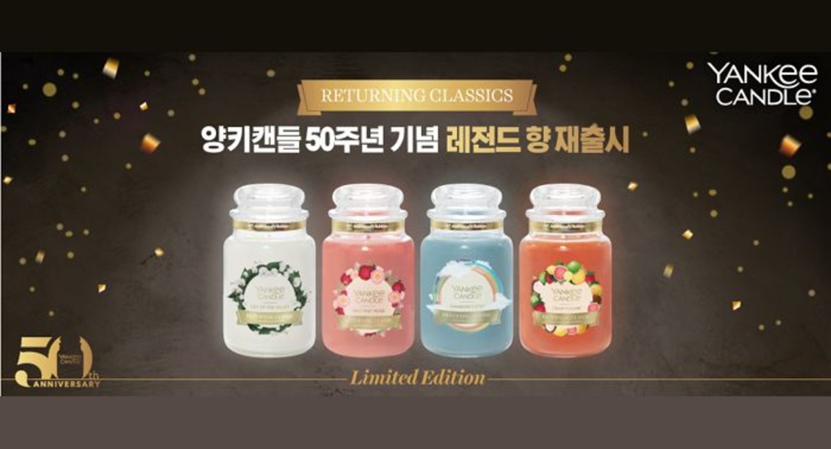 이번 이벤트는 지난 50년간 양키캔들에서 가장 인기가 많았던 향종 4종을 한정판으로 새롭게 재출시하고, 상품 구매시 50주년 기념 에코백을 증정한다.