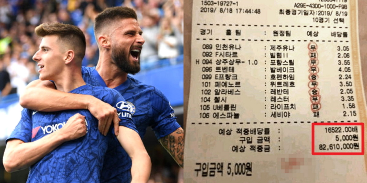 19일 한 누리꾼이 경기 승패에 돈을 거는 스포츠토토(프로토)를 통해 단돈 5천 원으로 약 8천 2백만 원을 버는 기염을 토했다.