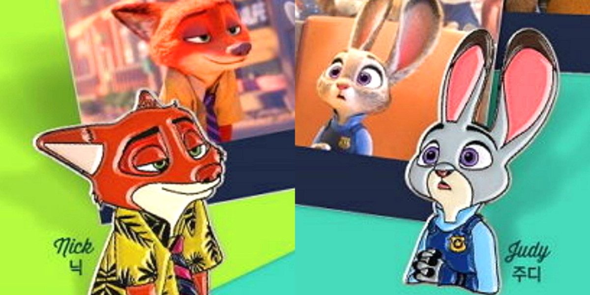 애슐리가 오는 22일부터 한정 판매하는 배지 세트는 주인공 주디와 닉, 플래시로 구성되어 있다.