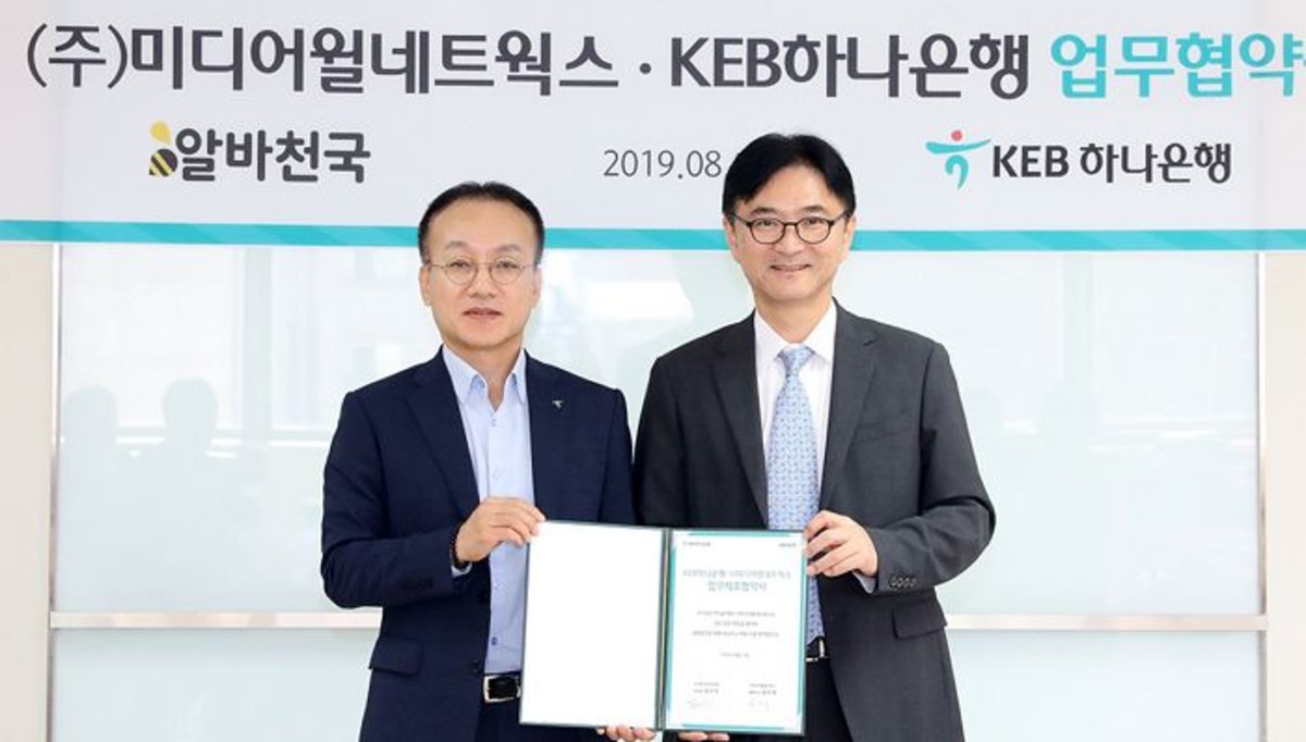 KEB하나은행과 미디어윌네트웍스는 양사 채널을 활용한 공동 마케팅을 통해 신규손님을 창출하는 한편 구인∙구직에 대한 솔루션을 지원하는 장기적 '상생' 제휴 협력관계를 구축할 예정이다.
