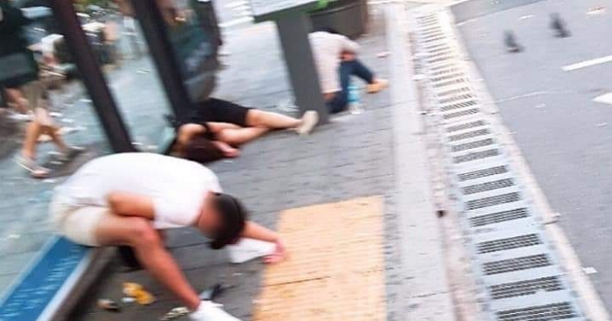 공개된 사진 속 사람들은 술에 잔뜩 취해 길바닥에 널브러져 있다.