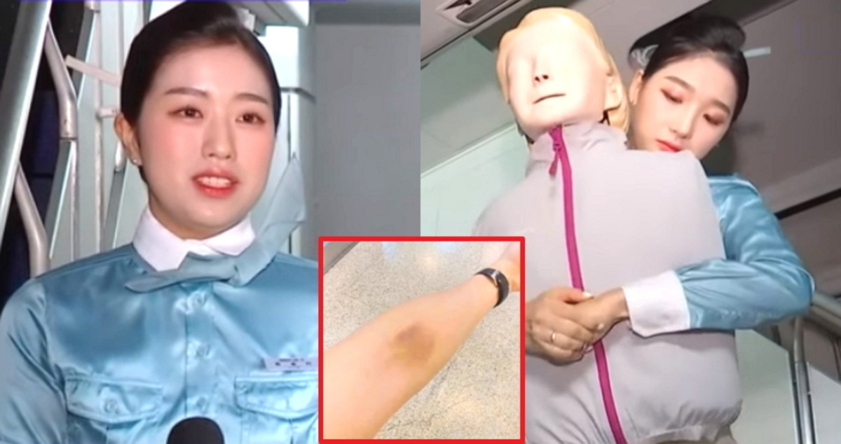헌신적인 응급처치로 아이의 목숨을 건진 승무원의 팔에는 시퍼런 멍이 들었다.
