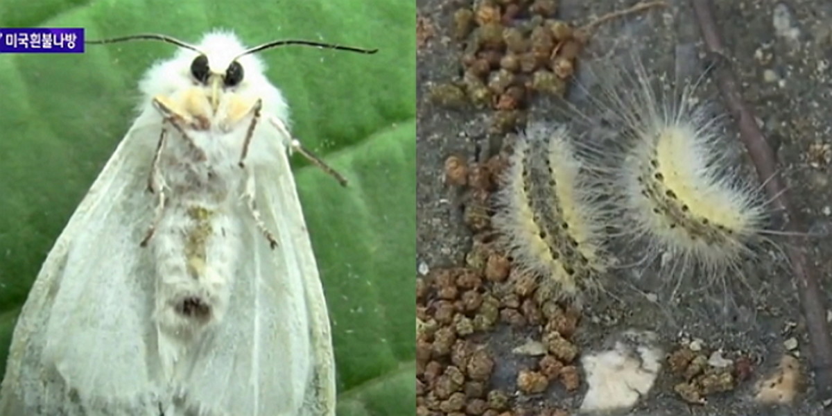 흰 털로 뒤덮인 모양의 미국흰불나방 애벌레는 1950년대 우리나라에 들어와 퍼지기 시작했다.