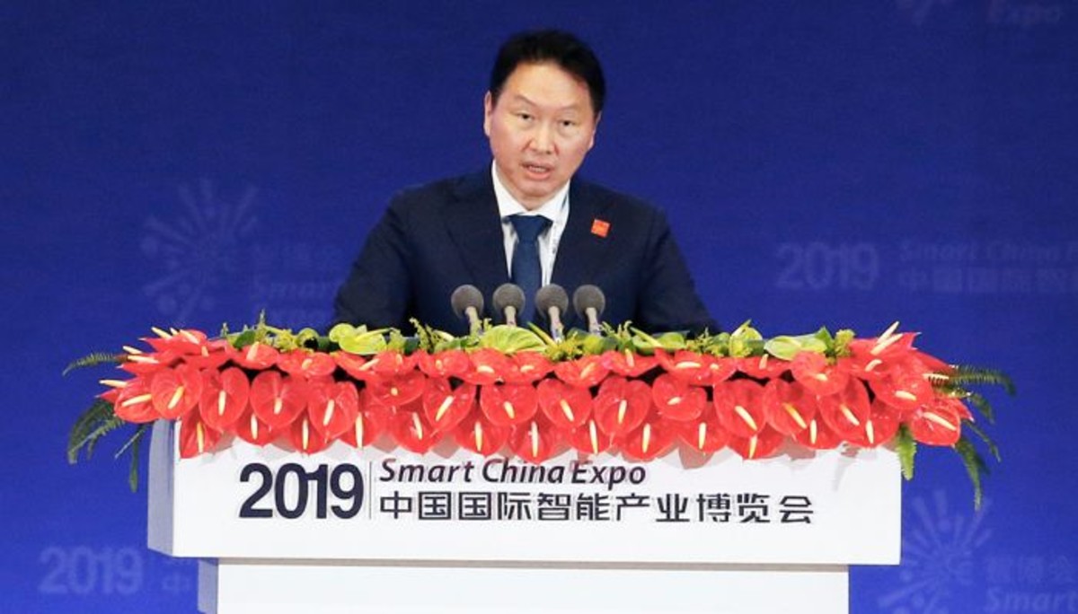 최태원 회장은 26일 충칭 국제엑스포센터에서 열린 '2019 스마트 차이나 엑스포' 개막식 기조 연설을 통해 스마트 기술 혁신이 사회적가치 창출을 극대화하고 지속 가능성을 더 높일 수 있다고 강조했다.