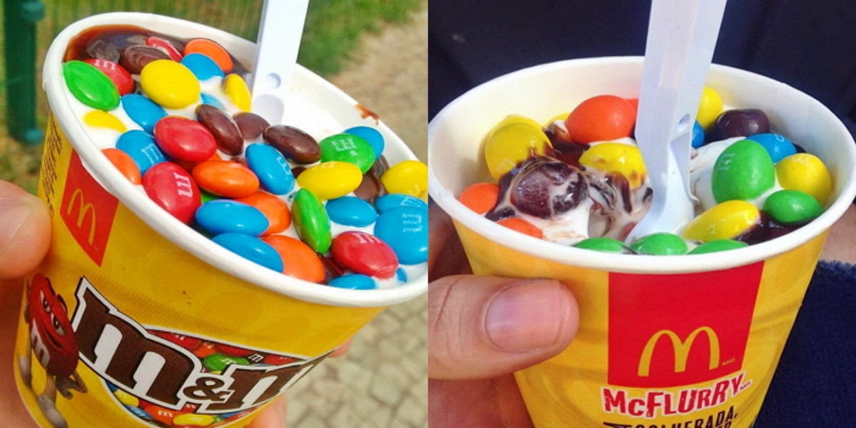 사진을 보면 맥도날드의 인기 디저트 맥플러리 아이스크림에 오색빛깔의 엠엔엠즈 초콜릿이 잔뜩 올라가 있는 모습이다.