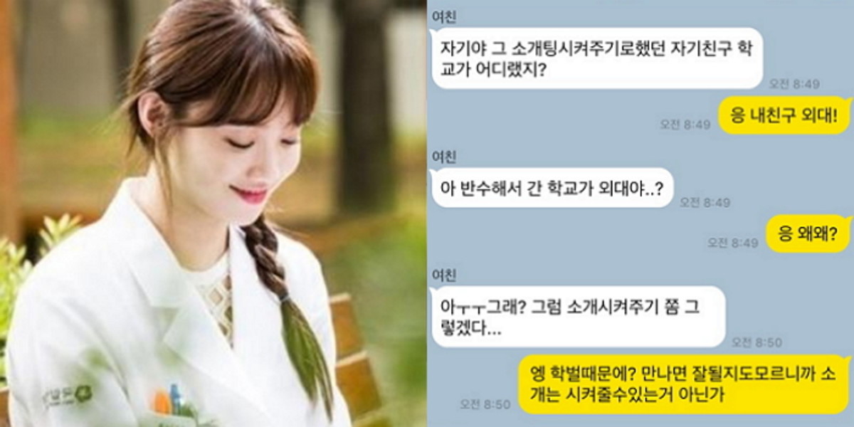 그 이유는 소개팅남의 '학력' 때문이었다. 약대생과 외대생을 연결해준다는 것 자체가 주선자로서도 마음이 탐탁지 않다는 말이었다.