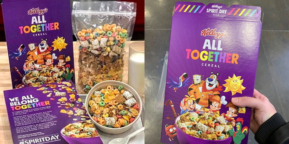 게시글 속 소개된 올 투게더는 켈로그에서 인기 있는 시리얼을 모두 한데 모은 점이 특징인 제품이다.