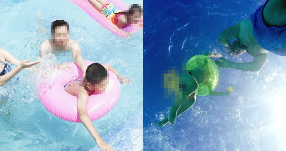 아래 문구를 본 후 사진을 다시 보면 아빠와 아들 뒤로 수영을 즐기고 있는 여러 사람이 보이기 시작한다.