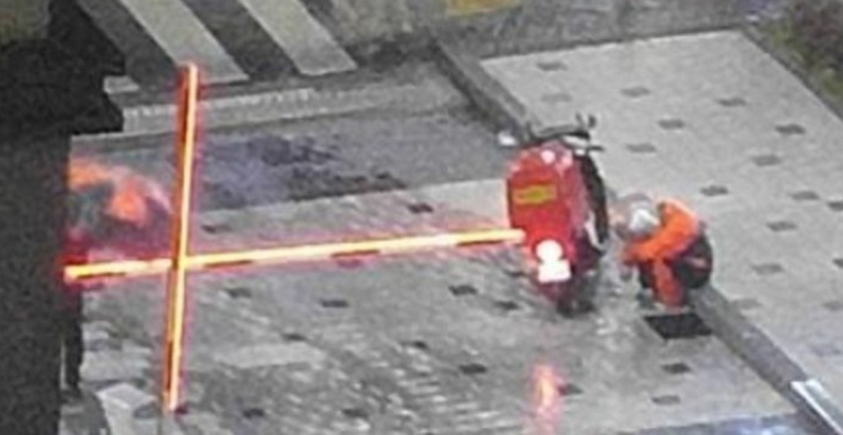 공개된 사진에는 한 배달원이 오토바이 옆에 쭈그려 앉아 고개를 푹 숙이고 있다.