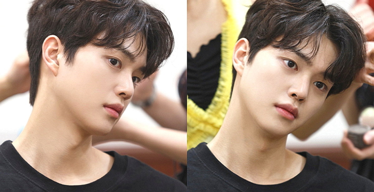 그는 이마를 반쯤 드러낸 펌 헤어스타일을 하고 섹시하면서도 나른한 분위기를 뿜어냈다.