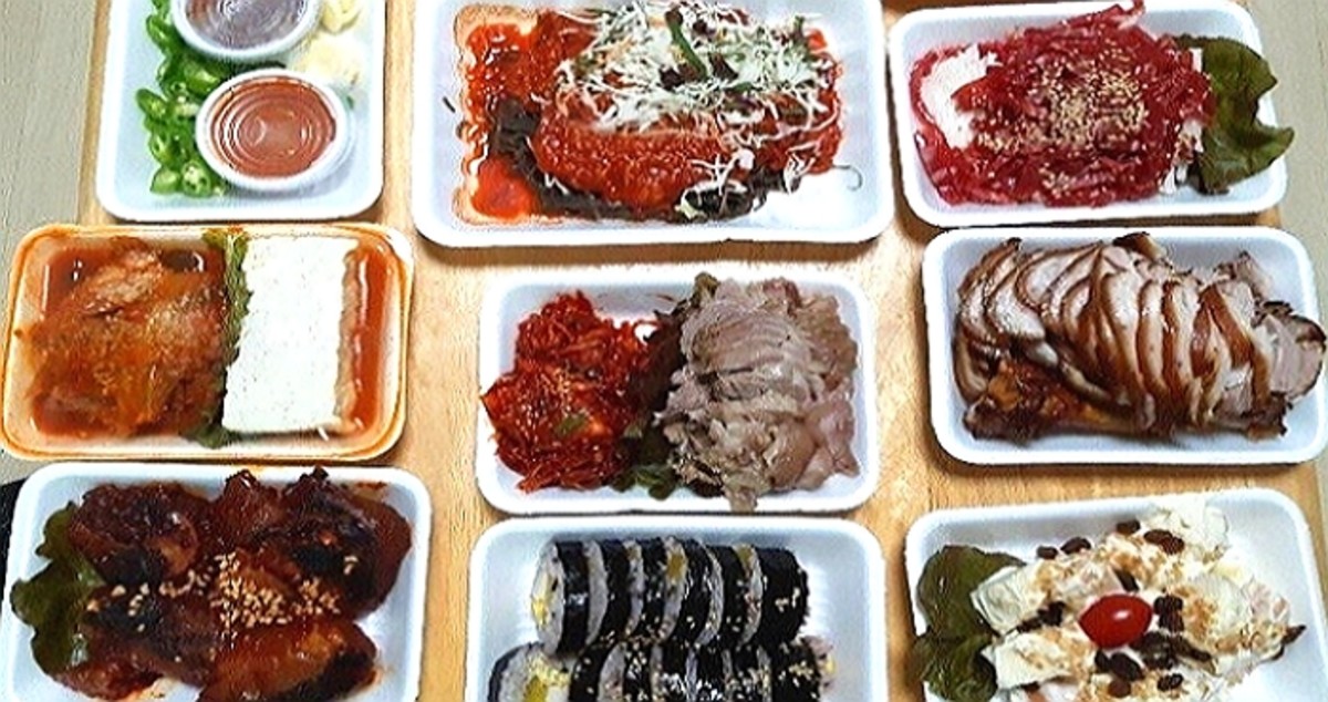 먼저 보기만 해도 군침이 흐르는 보족 세트의 구성은 '보쌈', '족발', '양념 족', '육회', '막국수', '김밥', '동치미 국물', '콩나물 국물', '두부김치', '부추 절임', '상추' 그리고 '1.5리터짜리 콜라'다.