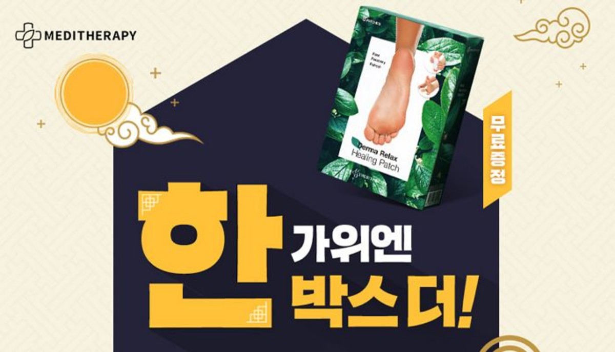 오는 15일까지 메디테라피 전 상품을 5만 원 이상 구매 고객에게는 1천만장 판매 신화를 세운 국민 발바닥 패치 '더마릴렉스 힐링패치' 1세트를 무료 증정한다.