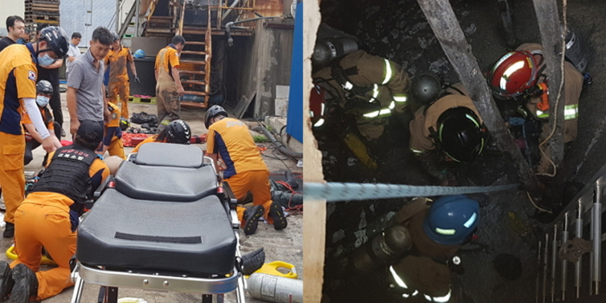 신고한 직원은 "지하탱크에 내려간 근로자들이 시간이 지나도 올라오지 않아 현장에 가보니 쓰러져 있었다"고 말했다.