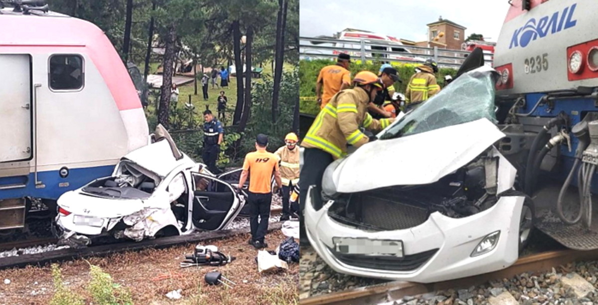12일 소방당국에 따르면 이날 오전 7시 15분께 강원 동해시 망상동의 망상 제2오토캠핑장 입구 인근 동해선 철길 건널목에서 열차와 아반떼 승용차가 부딪혔다.