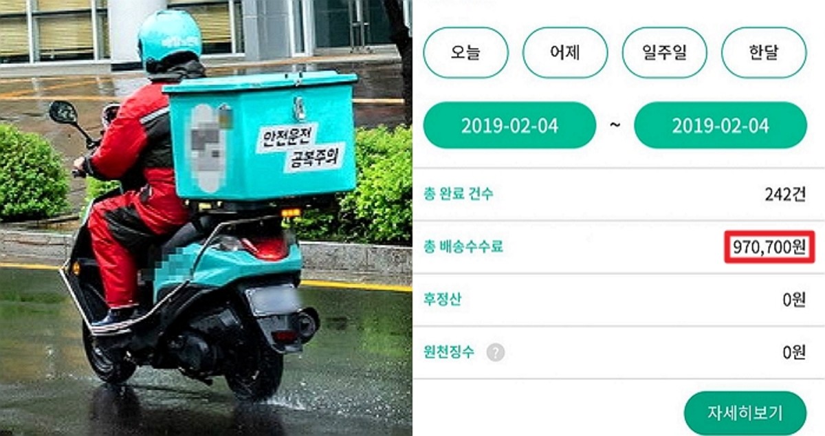 공개된 내용에 따르면 해당 기사는 총 97만 700원의 배송 수수료를 벌어들였다. 단 하루 동안 무려 97만원 가량의 이익을 얻은 것이다.