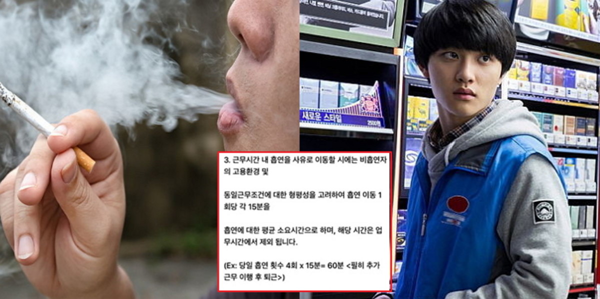 이어 "흡연을 하기 위해 4회 자리를 비웠다면 '4회X15분'으로 계산하여 1시간을 추가적으로 근무를 이행한 후 퇴근해야 한다"고 설명했다.