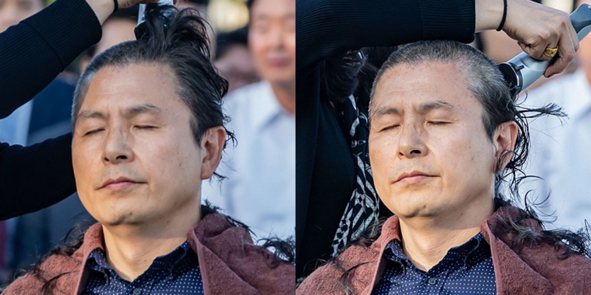 16일 오후 5시 황 대표는 청와대 앞에서 문재인 정부의 헌정유린을 지탄하고 조 장관의 파면을 촉구하는 내용의 성명을 내고 머리를 깎았다.