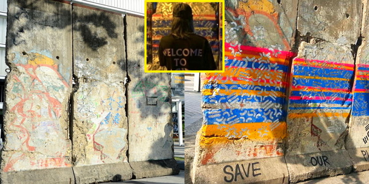 정씨는 스프레이로 서독 쪽 벽면에 분홍, 파랑, 노랑 등을 칠했고 동독 쪽에는 '날 비추는 새로운 빛을 보았습니다. 내 눈을 반짝여줄 빛인지' 등의 글귀를 새겨 원형을 훼손시킨 바 있다.