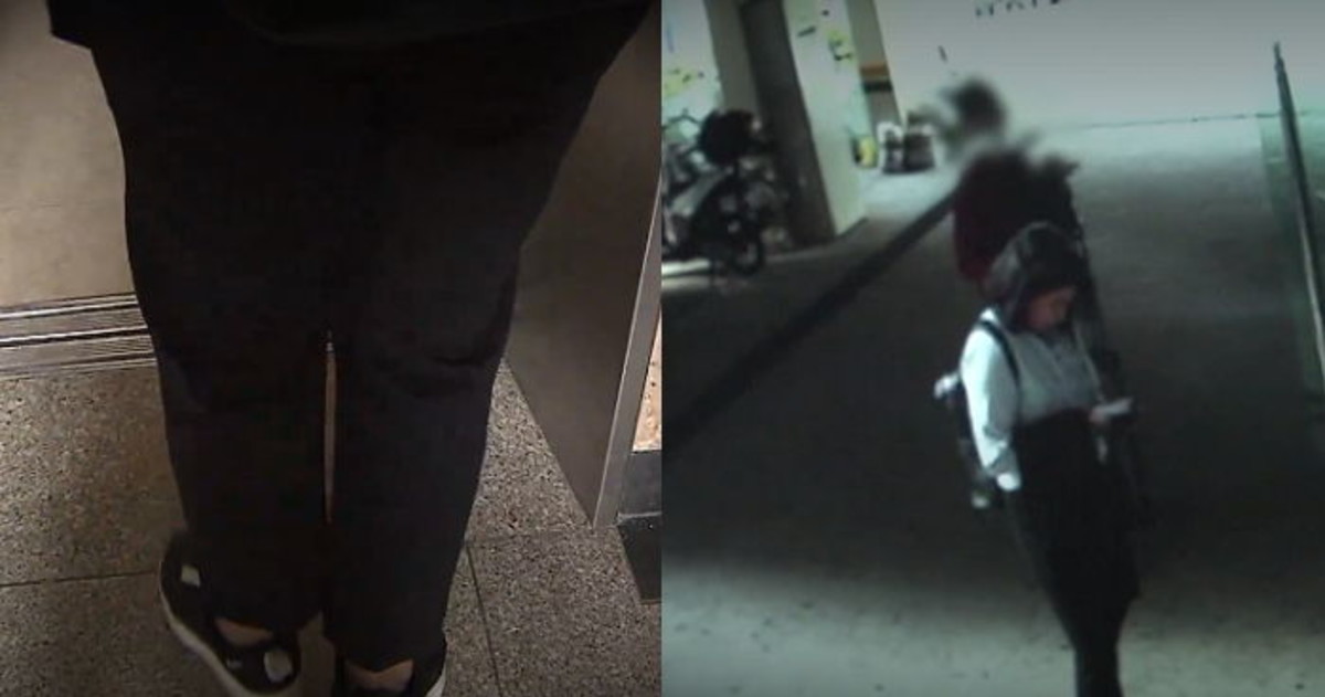 여성은 남성을 강하게 밀치며 엘리베이터 문을 닫았다. 그러자 남성은 계단으로 내려가 아파트 밖으로 재빠르게 도망쳤다.