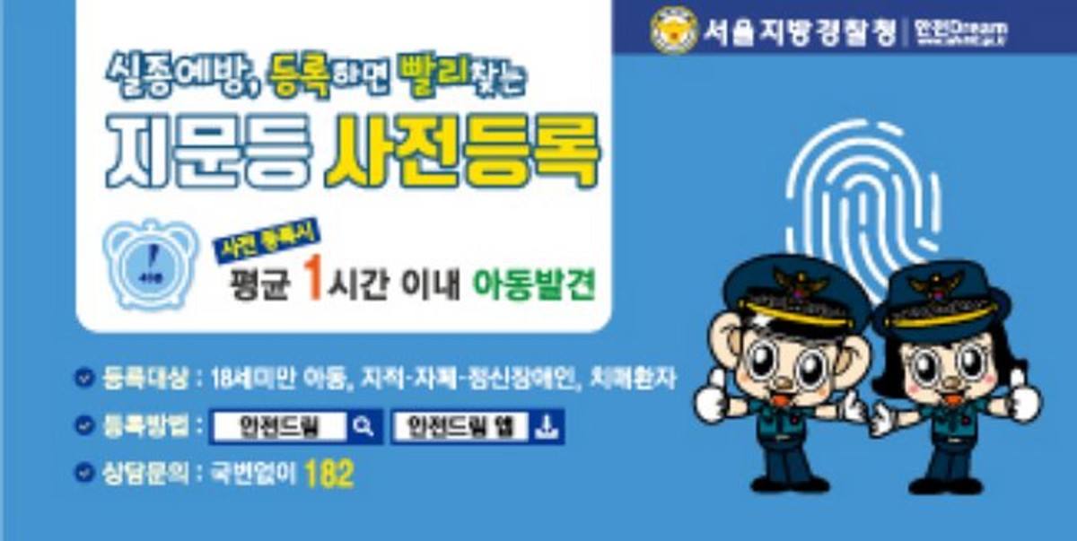 '지문 등 사전등록제'는 아동이 실종됐을 때를 대비해 미리 경찰에 지문과 사진 등을 등록해 실종 시 등록된 자료로 신속하게 발견하기 위한 사전 제도다.