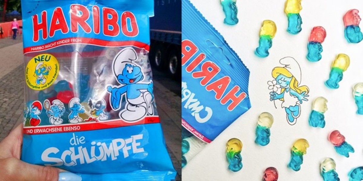 그 주인공은 '하리보 스머프' 젤리로 인기 만화 개구쟁이 스머프의 캐릭터를 본뜬 귀여운 하리보 젤리다.