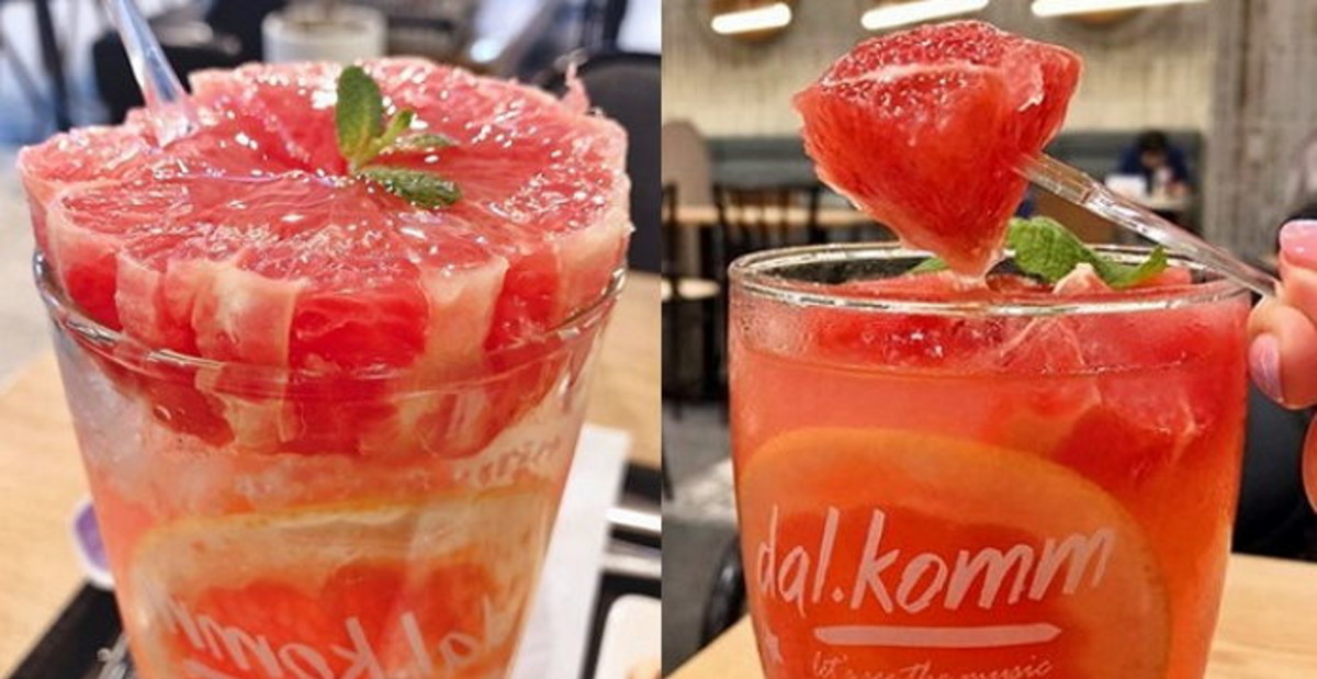 공개된 사진을 보면 시원한 자몽 음료 위에 생 자몽이 통째로 올라간 모습이다.