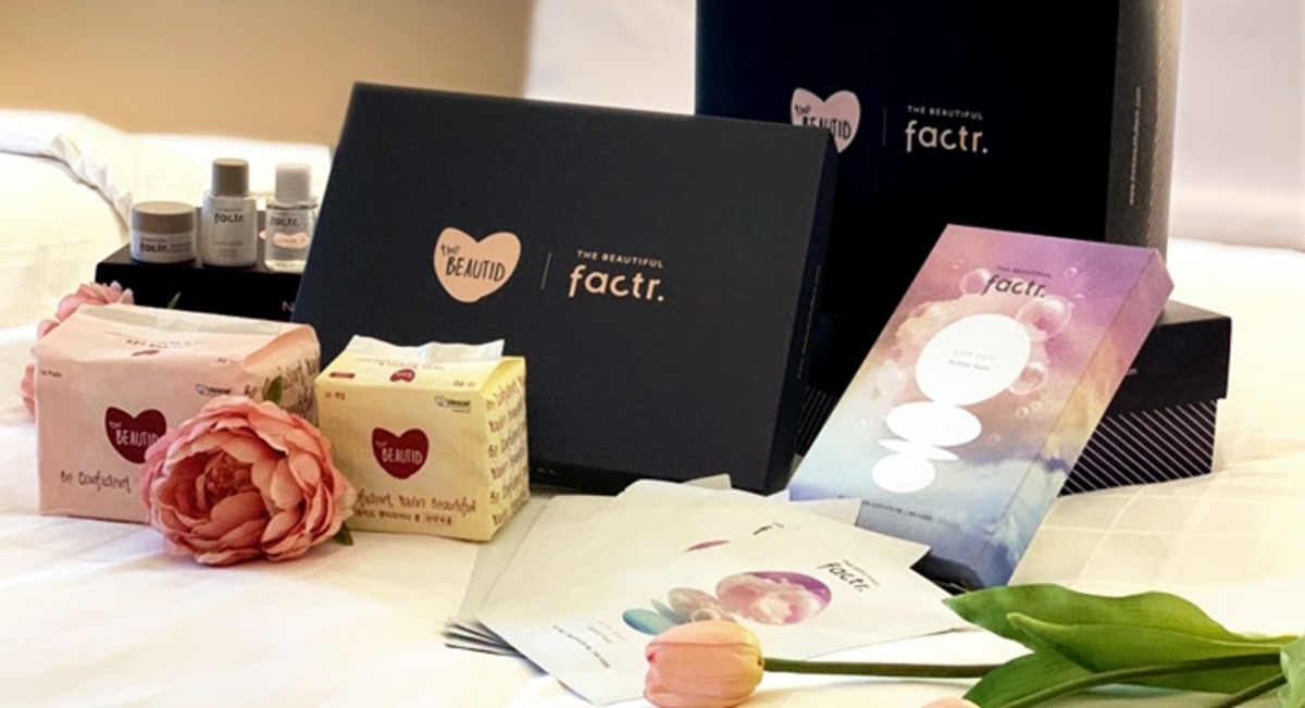 제공되는 뷰티 박스에는 코스메틱 브랜드 '더뷰티풀 팩터'의 버블마스크, 4종 트라이얼 키트와 프리미엄 생리대 브랜드 '더 뷰티드'의 프리미엄 생리대와 팬티라이너로 풍성하게 구성됐다.