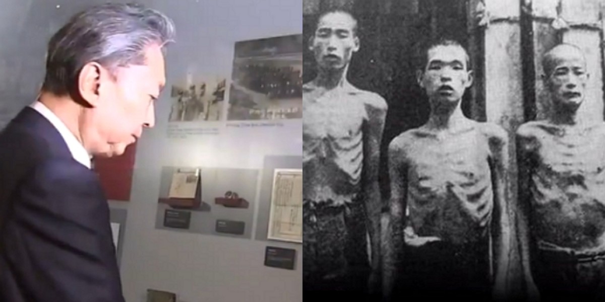 일제강제동원역사관을 찾은 전 총리는 과거 일본의 잘못에 대해 사과하며 고개를 숙였다.