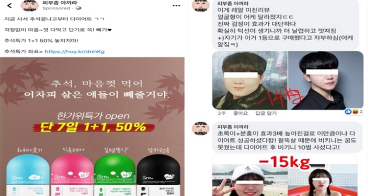 광고 대행사는 소비자로 가장해 다이어트에 효과가 있다며 A사 제품 섭취 전후 체형 변화 사진, 체중 변화 영상 등을 활용해 광고하고 댓글을 조작하기도 했다.
