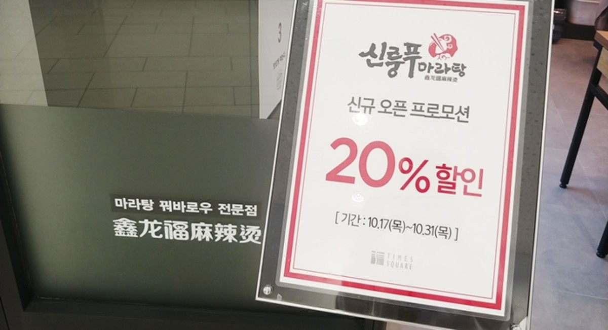 먼저 지하 1층에 신규 오픈한 남도분식은 오는 31일까지 상추튀김과 김밥쌈 중 택1과 떡볶이, 음료 1캔 세트를 1만 9,500원에서 1만 7천원으로 할인 판매한다. 이어 신룽푸 마라탕은 같은 기간 20% 할인 행사를 펼친다.