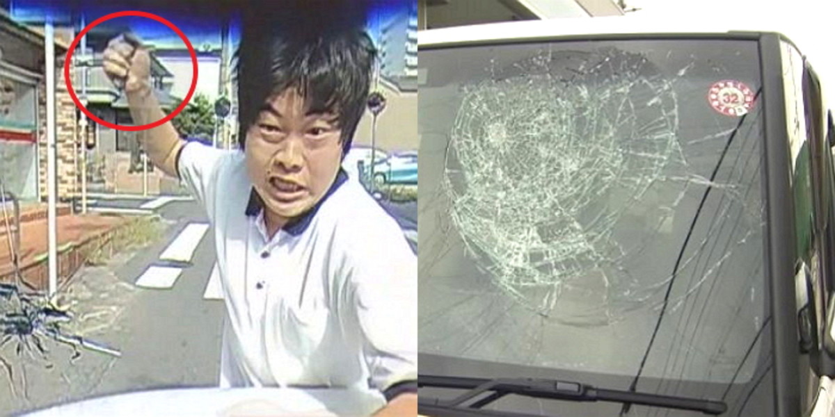 지난 18일(현지 시간) 일본 매체 주쿄TV방송은 정차돼 있는 차에 갑자기 달려들어 차량의 앞 유리를 부순 27세 남성을 보도했다.