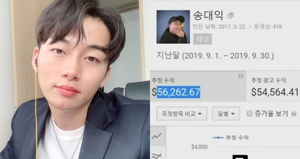 [인사이트] 석태진 기자 = 다채로운 콘텐츠로 구독자 100만 명을 돌파한 송대익이 자신의 한 달 수입을 공개했다.