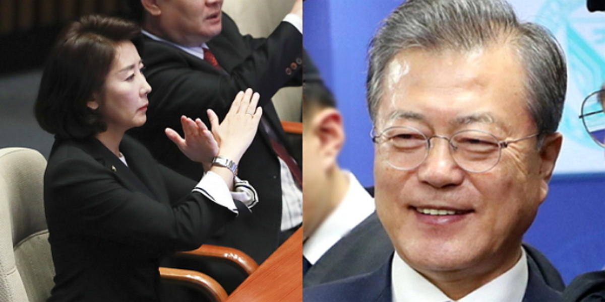 이런 황 대표의 말에 문재인 대통령은 미소를 지은 채 고개만 끄덕일 뿐 특별한 답변은 하지 않았다.