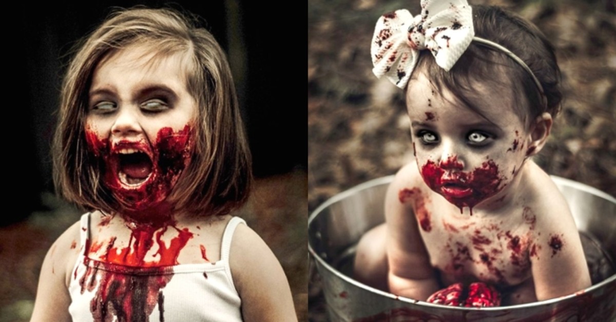 지난 22일(현지 시간) 영국 일간 미러는 두 딸에게 좀비 분장을 시킨 25세의 엄마 칼리 토마스(Carlee Thomas)의 완성작(?)을 소개했다.
