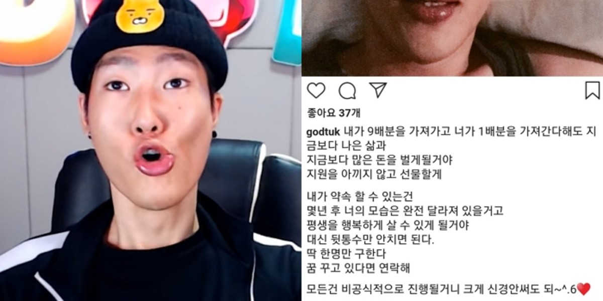 해당 글에서 턱형은 "내가 9배분을 가져가고 네가 1배분을 가져간다 해도 지금보다 나은 삶과 지금보다 많은 돈을 벌게 될 거야. 지원을 아끼지 않고 선물하게"라고 적었다.