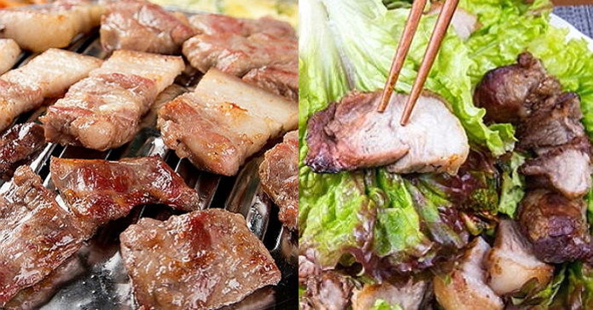 노릇노릇하게 구워진 삼겹살과 목살은 상추와 깻잎과 찰떡궁합을 이룬다.