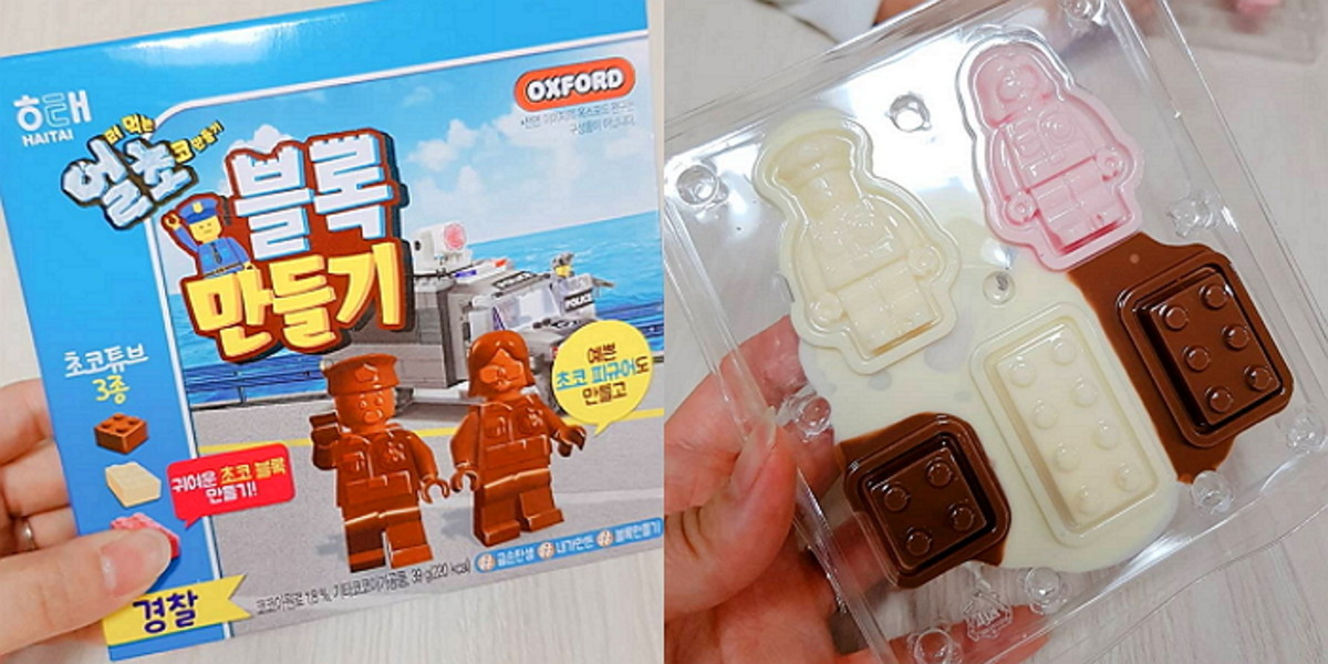 20분이 지난 뒤 냉동실에서 꺼내 천천히 분리하면 레고 블록 모양의 초콜릿이 나온다. 초콜릿 블록은 실제로 조립도 가능하다고 한다.