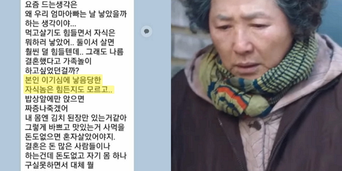 누리꾼들은 공개된 문자에 안타까운 현실과 아들의 태도에 쓴소리를 아끼지 않았다.