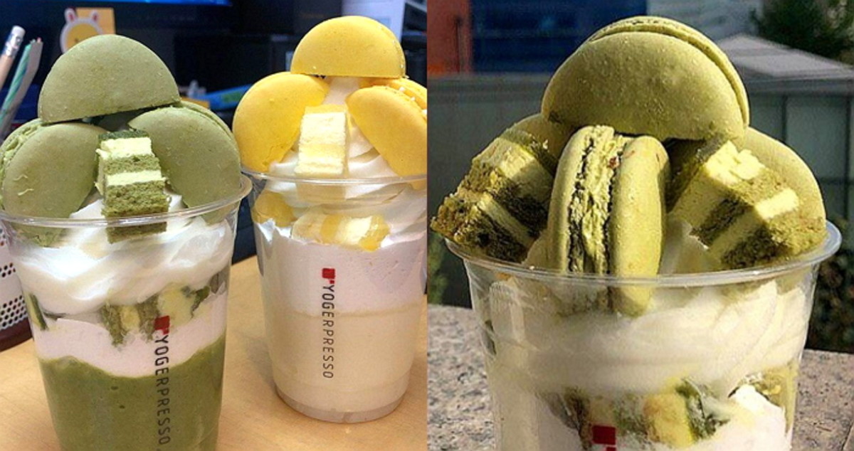 그린티는 그린티 요거트 스무디를 베이스로 해 촉촉한 녹차무스케이크와 쫀득한 녹차마카롱으로 장식한 게 특징이다.