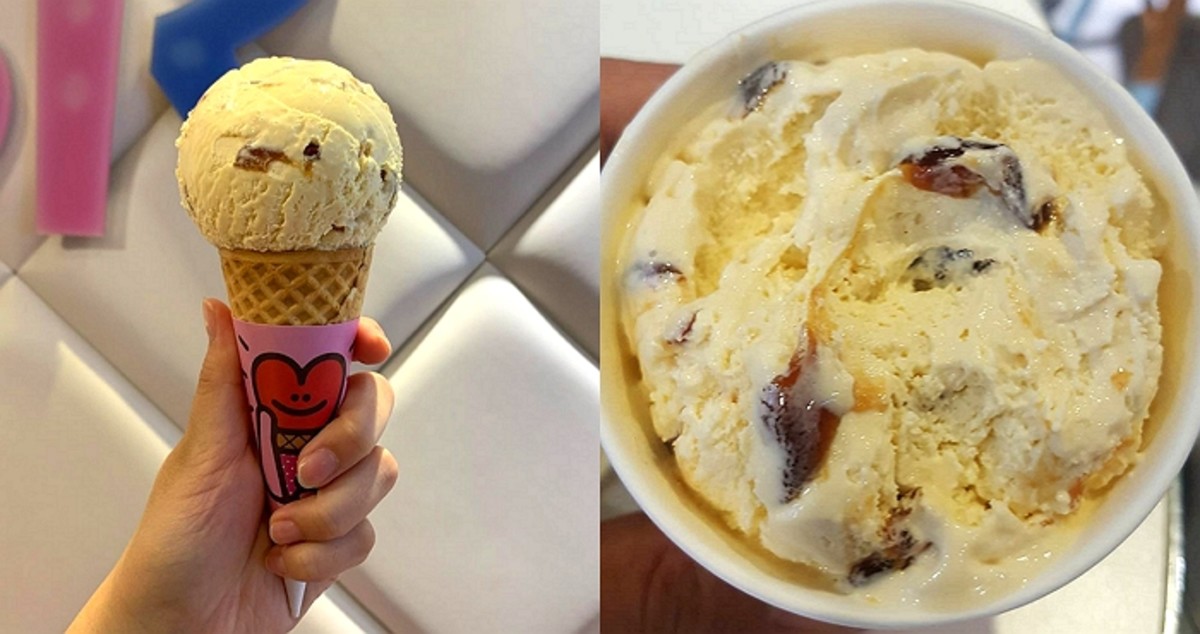 모습을 자세히 살펴보면 노르스름한 아이스크림 사이에 갈색빛 갱엿이 콕콕 박혀있는 것을 알 수 있다.